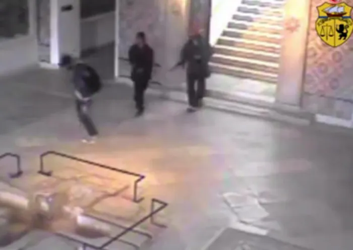 Gunmen walk through the Bardo Museum, in Tunis, Tunisia, last Wednesday, during the attack that killed 23 people including 20 foreign tourists. The attack, claimed by the Islamic State extremist group, was Tunisia's deadliest in more than a decade. Picture: EPA Gunmen walk through the Bardo Museum, in Tunis, Tunisia, last Wednesday, during the attack that killed 23 people including 20 foreign tourists. The attack, claimed by the Islamic State extremist group, was Tunisia's deadliest in more than a decade. Picture: EPA