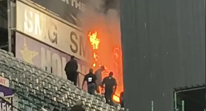 A fire broke out at the Hollywoodbets Kings Park Stadium following the EPCR Challenge Cup match between The Sharks and Section Paloise. Picture: Screenshot
