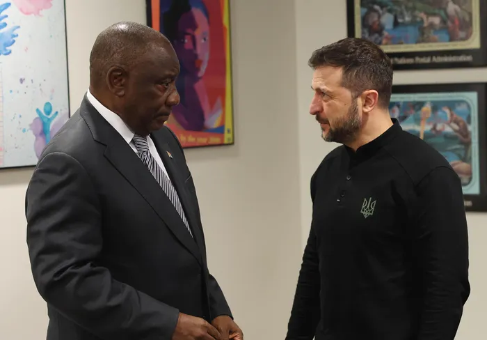 President Cyril Ramaphosa in a bilateral meeting with the President of Ukraine Volodymyr Zelensky on the margins of the 79th Session of the General Assembly in New York on September 25, 2024.