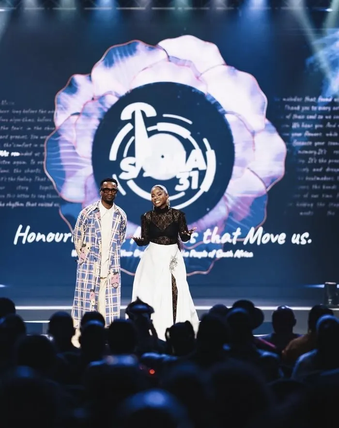Scoop Makhathini and Pamela Mtanga, the hosts of this year's Sama's that failed to impress netizens.