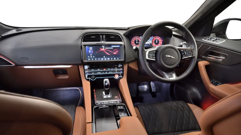 Talking comfort, the cabin is as cushy as you’d expect from a Jaguar, and it feels the sports car part too thanks to those race-style sports seats with integrated headrests and 14-way electric adjustment upfront.