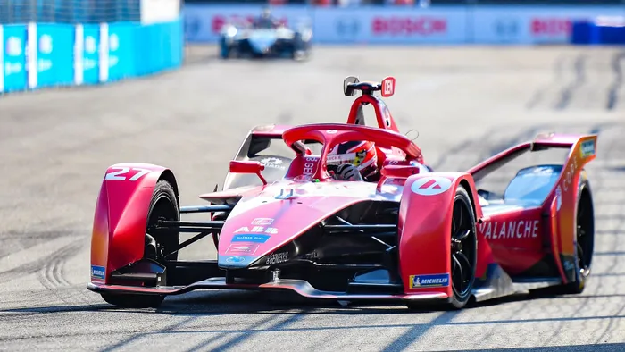 Brazilian veteran Lucas di Grassi started on pole position and finished third for Mahindra after a determined defensive drive under pressure from a string of cars following closely behind.