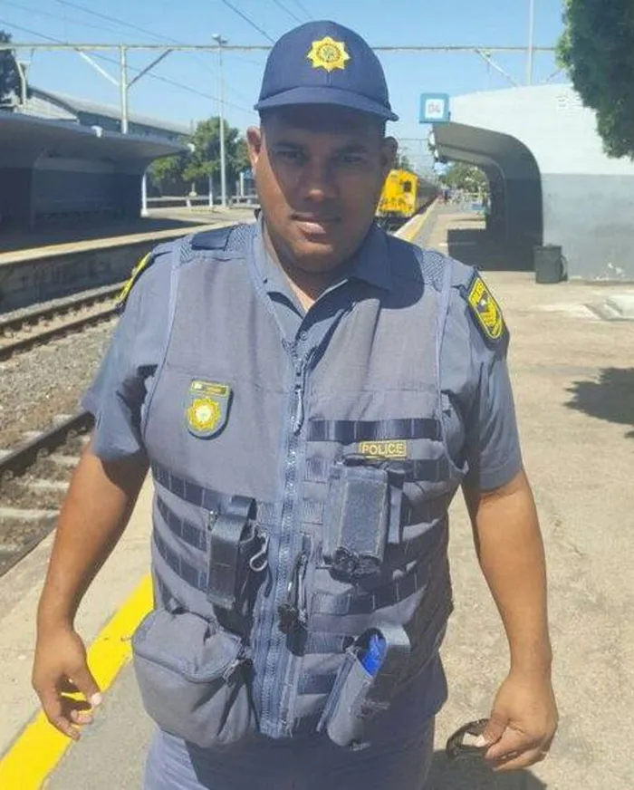 Sergeant Marlon October, a member of the Rapid Rail Unit, was on his way to work when the incident occurred. Picture: Somerset West CPF/Facebook Sergeant Marlon October, a member of the Rapid Rail Unit, was on his way to work when the incident occurred. Picture: Somerset West CPF/Facebook