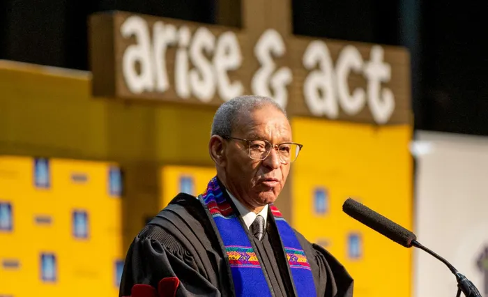 Struggle stalwart, Professor Allan Boesak, addresses the Diakonia Council of Churches’ Good Friday prayer service at Durban’s Inkosi Albert Luthuli International Convention Centre on Friday morning.