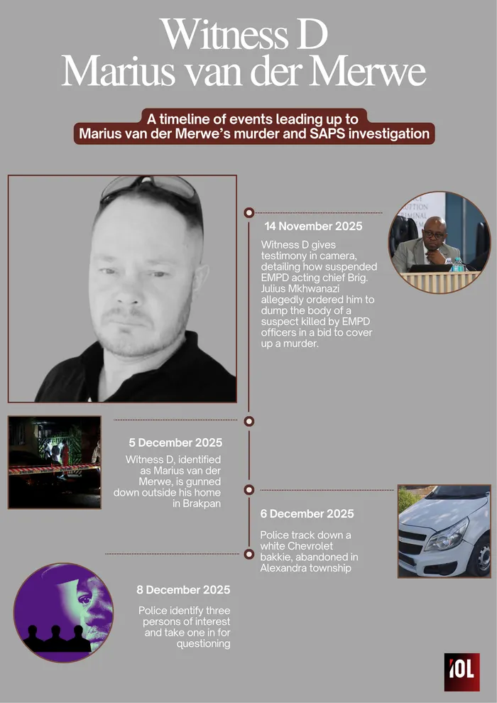 A timeline looking at Witness D's testimony, his murder and the SAPS investigation