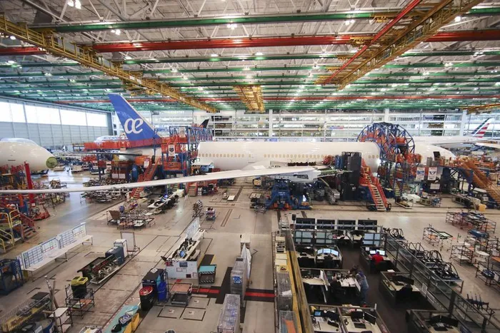 Photo shows interior of the final assembly building in Boeing South Carolina in North Charleston, South Carolina of the United States.