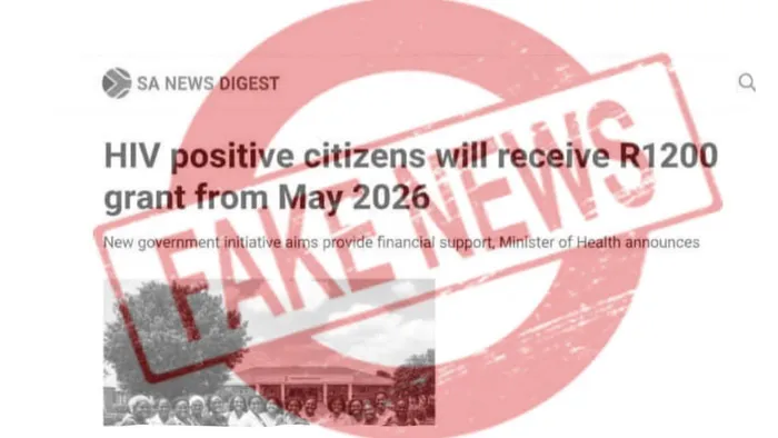 The National Department of Health has issued a warning to the public about a misleading social media post falsely claiming that HIV-positive South Africans will receive a monthly grant of R1,200 starting in May 2026.