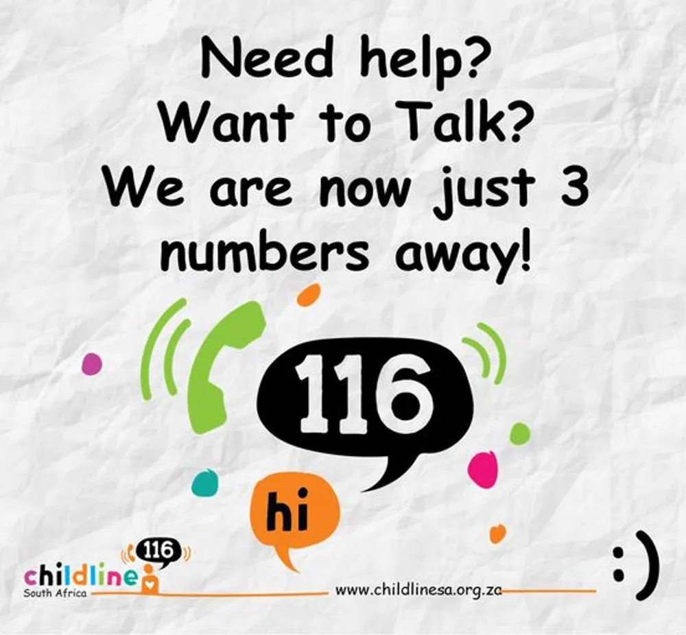 DURBAN - CHILDLINE South Africa has introduced a new, shorter number. This week, the organisation launched its 116 number which is a toll-free helpline number for both children and families with child-related matters.