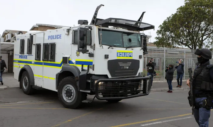 Police presence at the Bishop Lavis Magistrate Court, Cape Town. Two police officers found themselves on the wrong side of the law in Mpumalanga and Free State. Photographer- Tracey Adams/African News Agency (ANA)