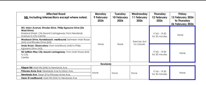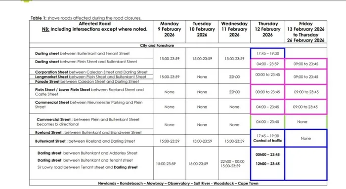The 2026 State of the Nation Address (SONA) is taking place on Thursday, February 12, and the City of Cape Town has asked motorists to take note of the road closures that have been put in place.