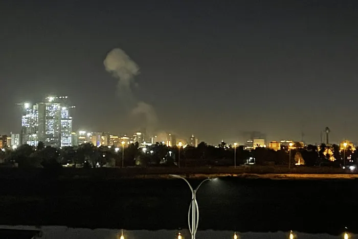A plume of smoke rises over the Iraqi capital Baghdad on March 16, 2026. A loud explosion was heard in Baghdad late on March 16, AFP journalists said, with smoke seen near the city's heavily fortified Green Zone.